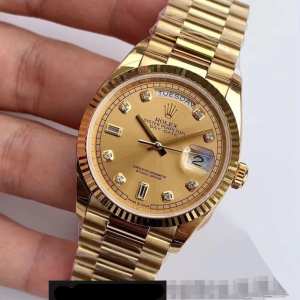ROLEX DAY DATE CHAMPAGNE DIAL 18K YELLOW GOLD 36MM SWISS REPLICA m128238.0008