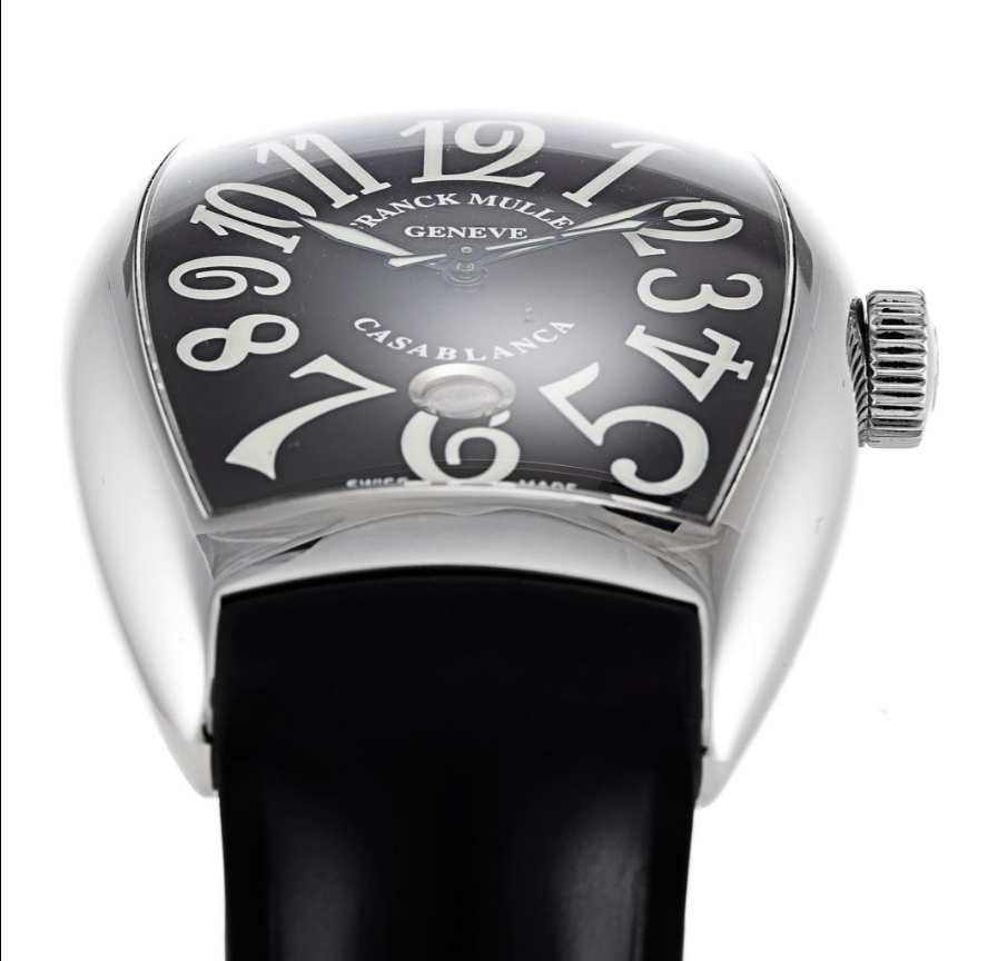 The Franck Muller Casablanca 8880 C DT Men Automatic 39 MM watch features a 39mm tonneau – shaped stainless steel case. a black dial with iconic Arabic numerals. and a black rubber strap. With scratch – resistant sapphire crystal and 30m water resistance. it blends unique design and everyday functionality.