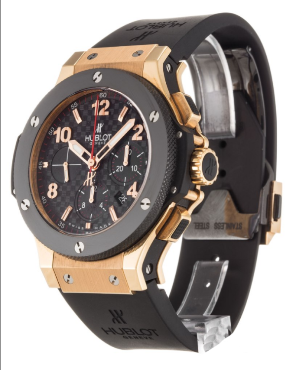 Embark on a journey of luxury watchmaking with this HUBLOT creation. Blending the opulence of 18K rose gold and the toughness of black ceramic. paired with the brand’s precise chronograph movement. it offers a harmonious mix of sophistication. durability. and performance. The luminous – accented dial ensures readability around the clock. while the comfortable rubber strap adapts to various lifestyles. Whether you’re attending a high – end social event or engaging in an active pursuit. this watch embodies HUBLOT’s dedication to crafting timepieces that transcend ordinary design. It’s a statement of refined taste. bridging the gap between luxury and sporty functionality. and delivering an unmatched wearing experience that reflects both style and substance.