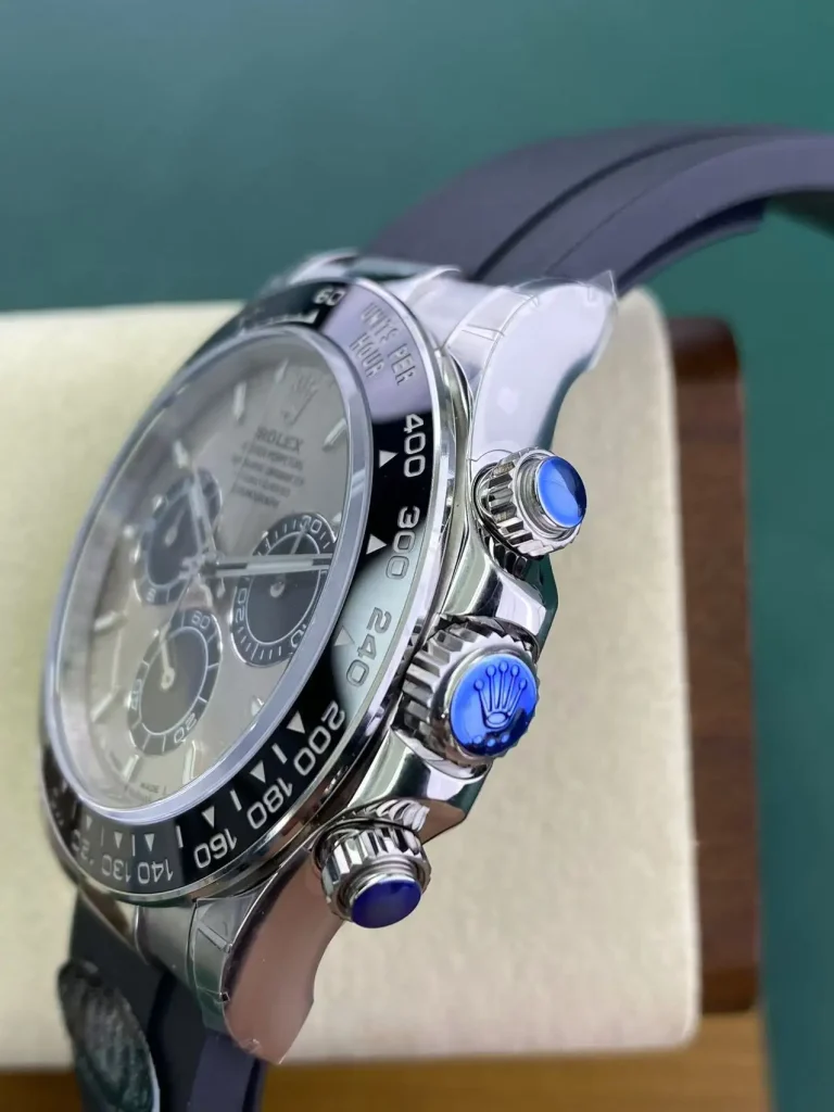 - Convex Glass: Signature convex sapphire crystal of the Daytona. enhancing the watch’s iconic and authentic appearance.