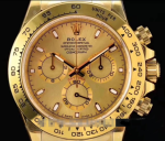 Full 18K gold Rolex Daytona with champagne dial. gold accents. and Cerachrom bezel. Merges chrono performance (tachymeter. luminous hands) with luxury (gold build. diamond markers). Perfect for collectors – sleek. precise. opulent. Ideal for high-end moments. embodying Rolex’s design and precision legacy in a timeless gold package.