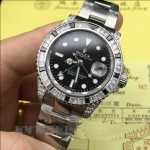 The Rolex GMT-Master II Diamond-Encrusted Watch is a masterpiece of horological artistry. blending Rolex’s iconic precision with opulent detailing. Its 904L stainless steel case houses a striking dial framed by a black ceramic bezel lavishly set with diamonds. creating a harmonious balance between luxury and functionality. The GMT dual time zone complication. a hallmark of Rolex’s adventurous spirit. allows wearers to track two time zones effortlessly. while the quick-set date feature adds practical refinement.