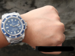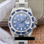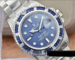 – **Custom Design:** This Rolex Submariner features a unique custom design with blue and diamond elements. setting it apart from standard models.