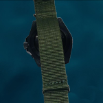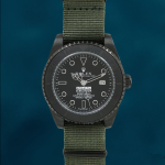 This Rolex Submariner 40mm men’s Stealth watch features a black dial. black bezel. and green fabric strap. Its stainless – steel build and date display offer style and functionality.