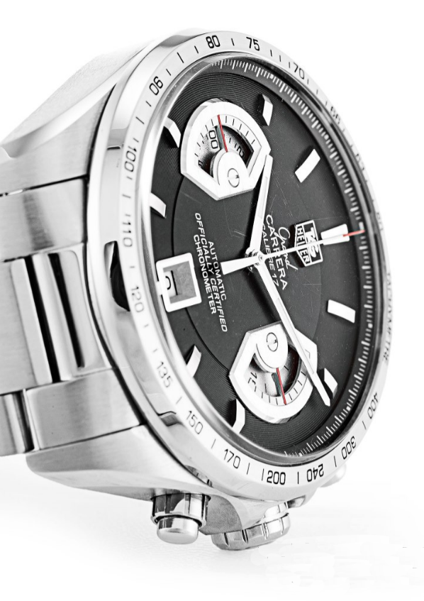 The TAG Heuer Grand Carrera Watch combines luxury and performance. Its stainless – steel build. black dial with sub – dials. and tachymeter bezel suit racing enthusiasts. With sapphire crystal and chronometer certification. it’s a high – end. functional timepiece.